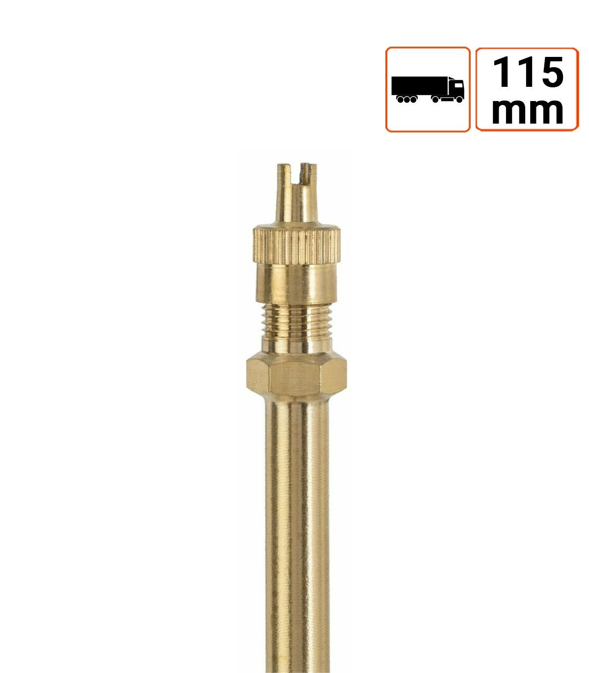 La rallonge de valve de pneu en laiton, d’une longueur de 115 mm, est conçue pour être utilisée dans les endroits difficiles d’accès pour les roues de camions et d’autobus.