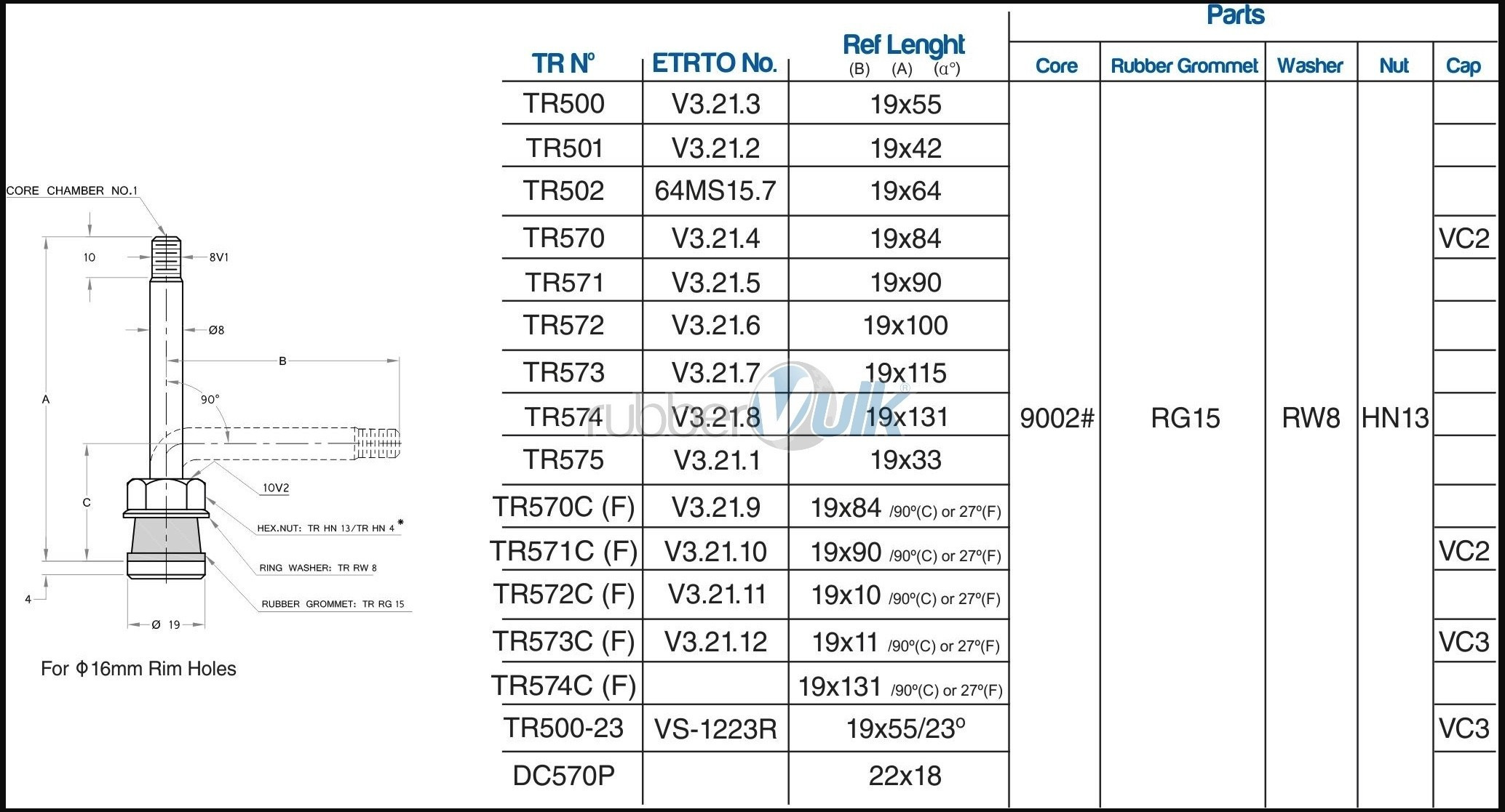 Valve Poids Lourds TR 571C ou 89 MS